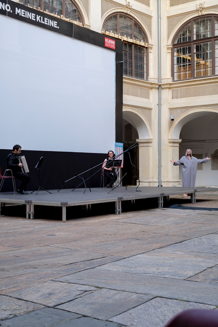 Am 22.6.2021 gab es im Lesliehof, im Joanneumsviertel in Graz, zwei Mal die Gelegenheit, durch «Schwere-Leichtigkeit» einen Impuls zum Innehalten zu bekommen und in eine andere Welt einzutauchen. Die Wichtigkeit von Live-Kulturerlebnissen nach dem langen Lockdown wurde sowohl dem Publikum, als auch den Ausführenden wieder sehr klar vor Augen geführt!